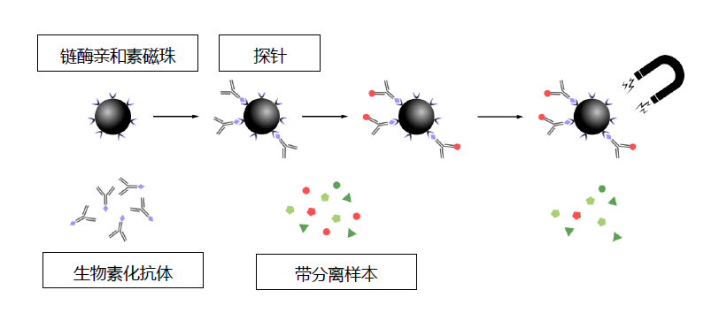 2. 將制備好的磁性微球探針與帶檢測分離的樣品混合,再用磁力架進行磁性分離清洗。