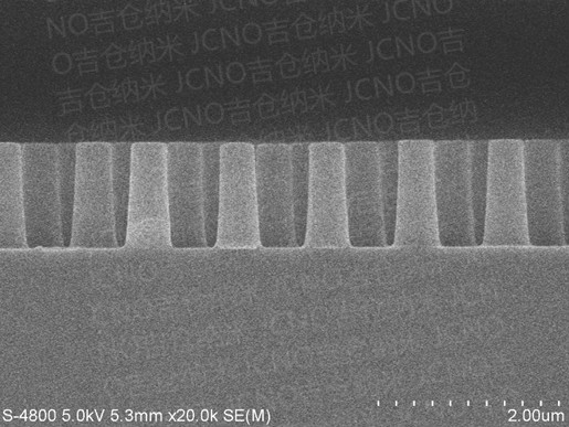 8、低壓壓印工藝過程,調節工藝條件殘余層厚度可控制在10nm以下。