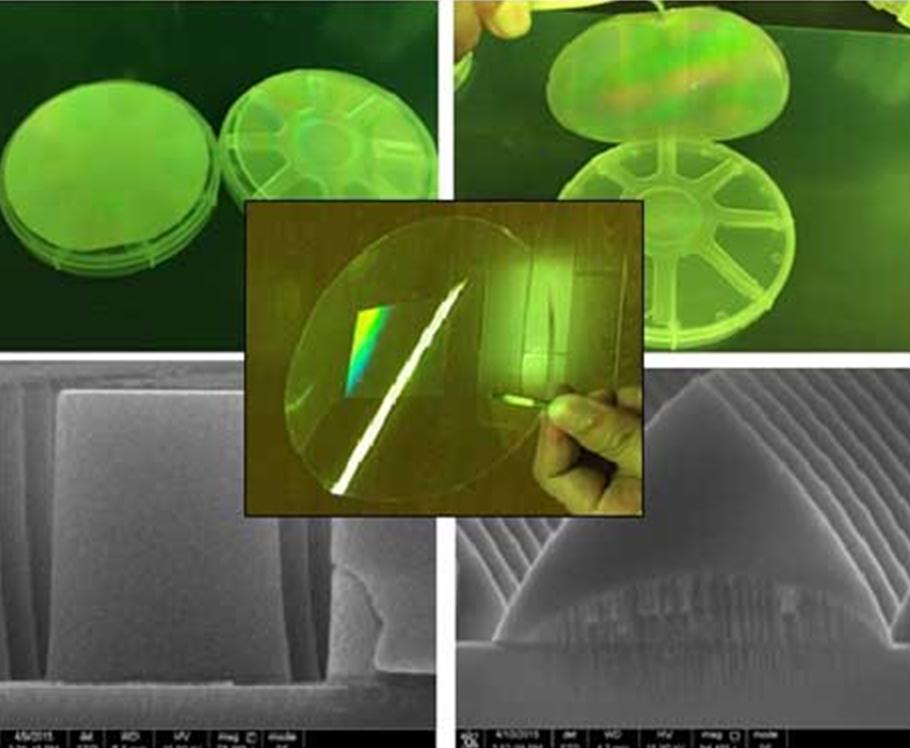 根據客戶要求定制模板(Si/Quartz),襯底大小可選,圖形最大可至6inch,周期最低50nm,可靈活設計多種模板。所有模板均可進行抗粘附處理。