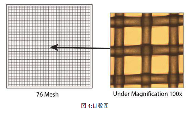 用于特定設備中正確的目數結構(也稱為目數大小)基于設備X、Y尺寸。對于最佳設備卸載性能,目的是減少膠到設備接觸點的數量,當VR托盤在釋放模式下(圖2)。因此,我司提供了一系列不同的目數結構:16,33,76,103,137,195。(圖3),每一個目數尺寸的對應線 the number of thread lines per linear inch。