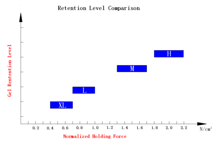 超低粘度、高粘度、中年粘度、低粘度和粘著力曲線圖
