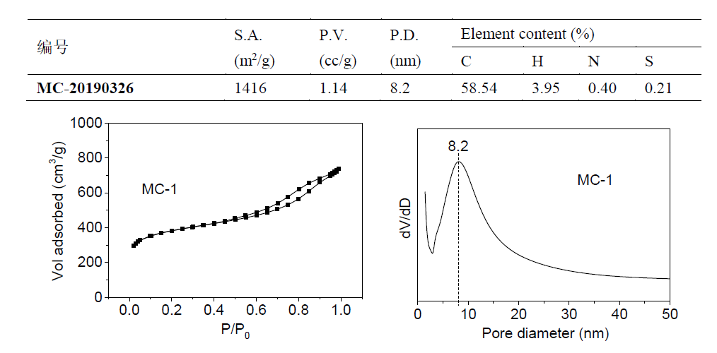 氮氣吸附等溫線(左),孔徑分布圖--脫附(右)