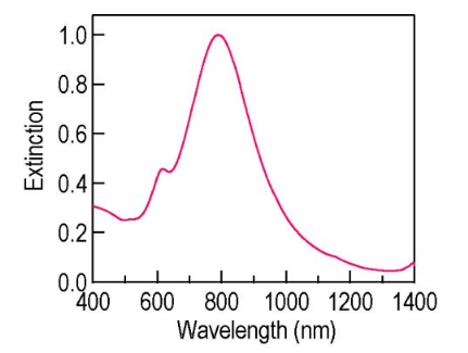 產(chǎn)品的顆粒純度大于95%,面內(nèi)偶極表面等離子體共振峰波長位于790納米左右。