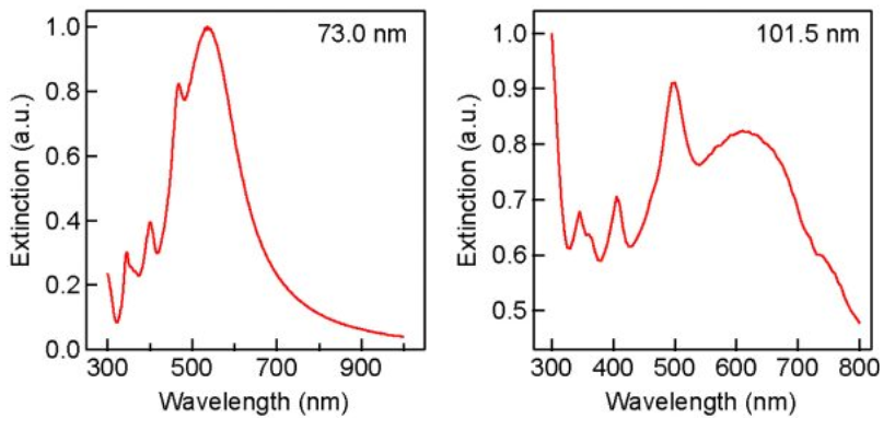 平均邊長:73.0 ± 3.2 nm和101.5 ± 5.3 nm