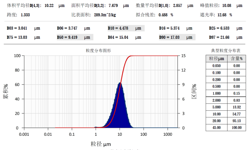 粒度 D50 ≤10um