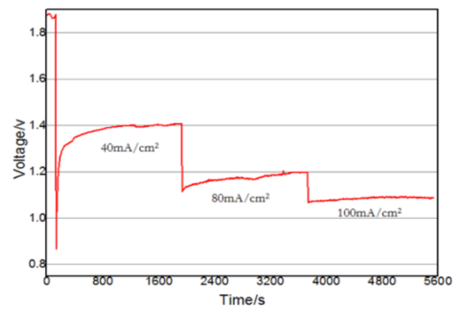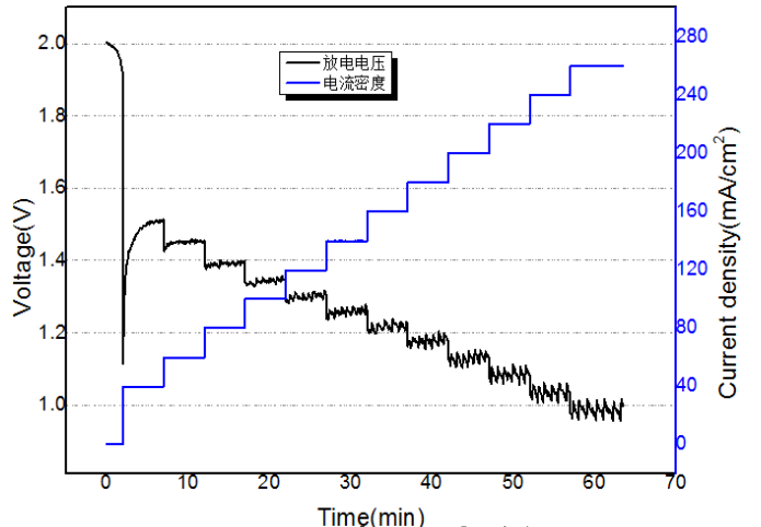 對比例采用輥壓法制備的氣體擴散層的恒流放電曲線