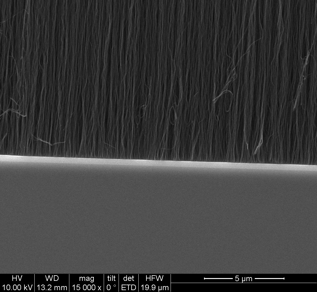 多壁碳納米管垂直陣列JCNTA-30 3-15nm <100μm 30*30mm 2100元/片