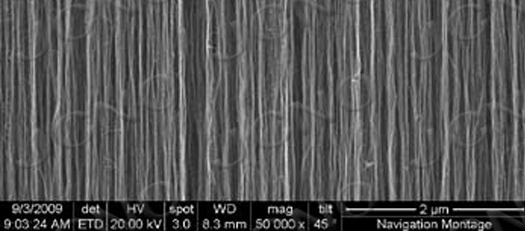 目前,只有4英寸,直徑5-10nm、高度300微米、襯底厚度420微米、間距幾十納米的垂直陣列有現(xiàn)貨